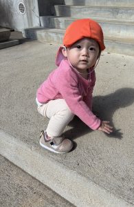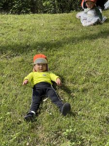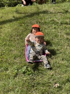 自然の滑り台を存分に楽しんで滑り降りて楽しむ、2歳児さんです🍄