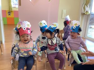 節分のお話を聞いたり、豆まきゲームをしたりして鬼退治もしましたよ🤗