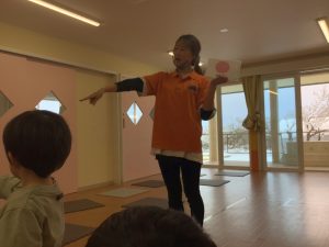 保育者のHow are you?の質問でカードを選び、自分の今の気分をお友だちに教えてくれましたよ!