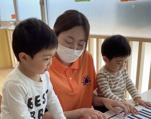 最初は歌を歌ってもポカンとしていた子どもたちですが、このように音楽をそれぞれの方法で楽しんでくれるようになってきています✨