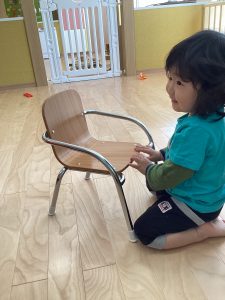 椅子をピアノの鍵盤に見立てて手を動かしています?