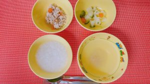 おやつの時間に友だちと元気良くお話しする声が聞こえてきました。給食を通してコミュニケーションをとれると食べるのが楽しくなりますね!!