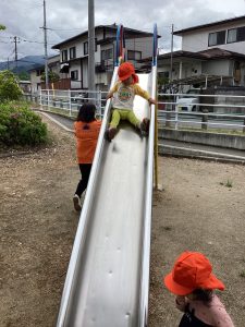 前回は上まで登るのが怖かった滑り台…