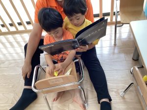 子どもたちも「おつきさま」「ほたる❔」などと言いながら楽しく読んでいます!