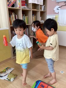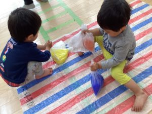 絵の具でいろんな色の色水を作り、ビニール袋に入れてモミモミ!