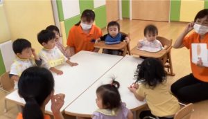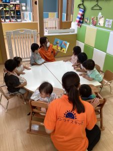 絵本が大好きな子供たちは、絵本が始まると、みんな集中!じっと見つめ先生の声に耳を傾けてくれます📚