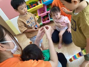 お友だちも触ってみたくなり触れてみました!さすが、りんご組さん🍎