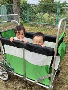 もも組のお友だちもバギーに乗ってお散歩を楽しんでいます😊