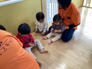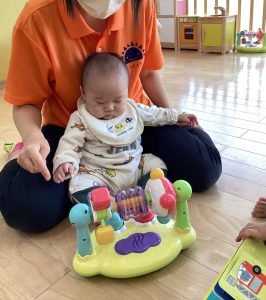 もも組さんは、お部屋で風船やベビージムで遊んでいます😋