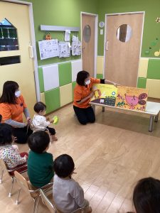 お歌の後は先生が大型の仕掛け絵本を読んでみました!