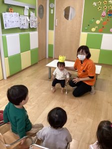 お誕生日のお友だちはもちろん、そうでないお友だちも興味津々でじっと見てくれていますね😊