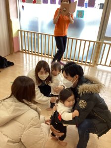 親子発表会では、「てをたたきましょう」「おもちゃのチャチャチャ」の2曲に合わせて手作りのマラカスの演奏の発表を行いました!