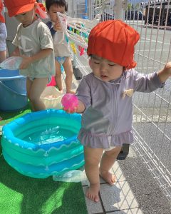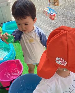 水遊び用のおもちゃも使いながら沢山水に触って暑い夏を乗り切りましたね🍉