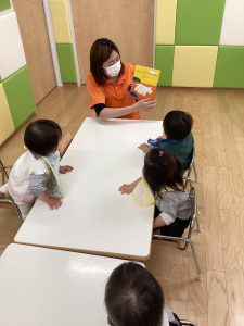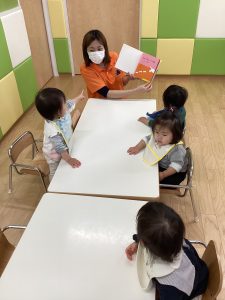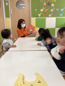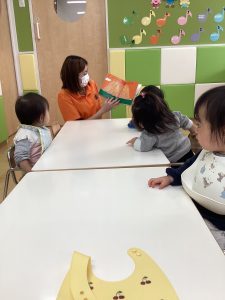 小さい0歳児クラスのお友達も絵本に夢中👀✨