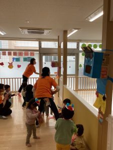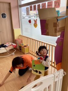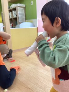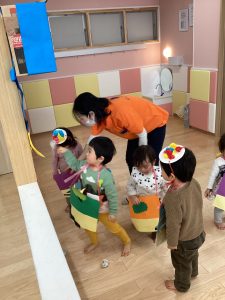 もも組さんのお友だちも鬼を怖がることなく豆まきが出来ましたよ![]()