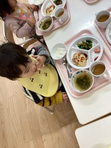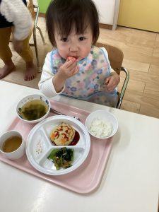 可愛らしい鬼さんのハンバーグに大喜びの子どもたちです⭐️