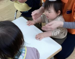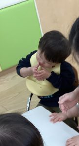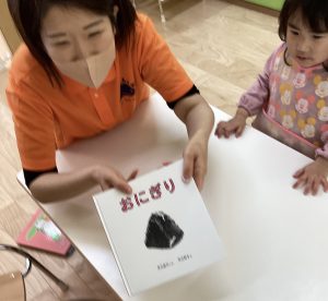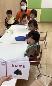 最近、おにぎりという言葉を覚えてたくさんお話してくれているもも組のお友達。