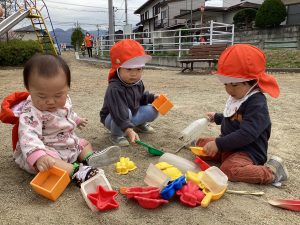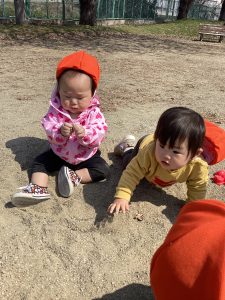 砂場で砂遊びを満喫