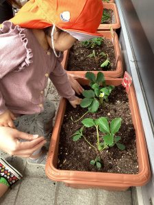今日はみんなが大好きないちごの植栽をしたよ🍓