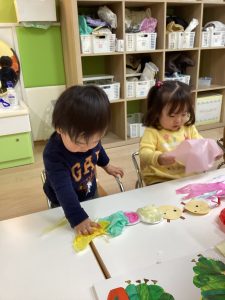 この前の絵本ブログでも少しお伝えしましたが、はらぺこあおむしの製作にも挑戦してみました⭐️