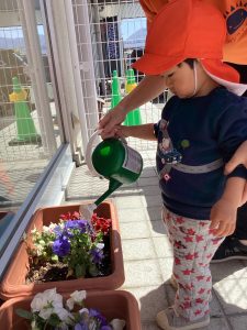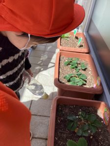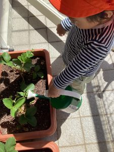 公園から戻ってきて、お花やお野菜にお水かけもしてくれました!