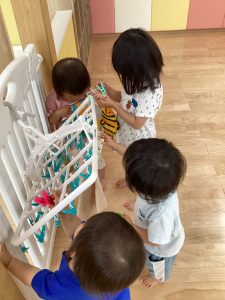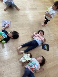 今、ブームの人形遊び。お人形と一緒にみんなでゴロン〜