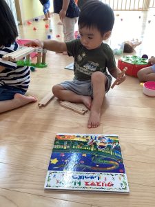大好きな絵本を見て、真似て線路を作るお友だちも🚃