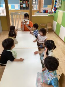 今月も残りと約2週間。今月の歌のアイスクリームが大人気。アイスクリームとアイアイ、どっちからする?と声かけるとアイスクリーム!と言ってくれる子供たち🍦