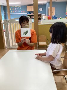 難しいかなと思いながら出したクイズをナス!トマト!そして皮がついたトウモロコシも見ただけで答えることができました🍆🍅🌽さすが野菜大好きな、りんご組のお友だち🍎🧒