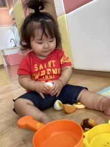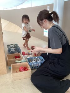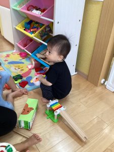 小さいお友だちなので最初は泣いて過ごすことになるかな?と思っていたのですが、そんな心配がいらないくらいさまざまな玩具に興味を持って楽しく過ごしてくれました👍