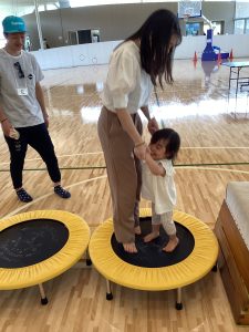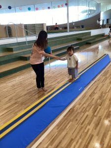 大きな平均台やトランポリンだってお家の人と一緒ならへっちゃらです👌