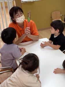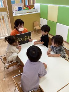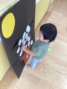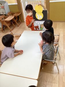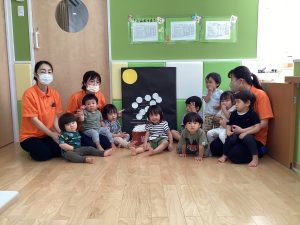 まーるいお月様が出てきた時には、手を丸くして表現してくれたり、「これなーんだ」の先生の声かけに「うさぎ!」と元気よくお話してくれたお友だちもいましたよ🙆♀️
