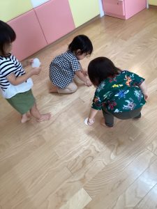 はじまるよ♪はじまるよ♪の手遊びに、これからなにがはじまるんだろう?と言って興味を示してくれるお友だちの声が聞こえてきました♪👦👧♪