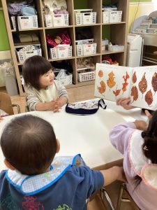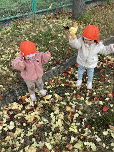 葉っぱの色が緑から赤や黄色に変わり子ども達も興味津々な様子です☺️