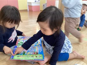お友達同士で仲良く絵本を見る姿にもほっこりします🤭