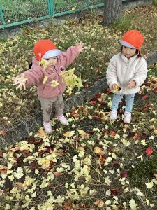 落ち葉やイチョウの葉っぱもたくさん見つけました🍂🍁✨