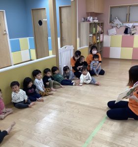 先生が読む、お話しをじっと興味津々に集中して見ていた お友だちです👀