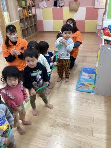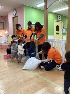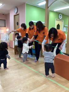 朝晩の寒さが少しずつ増し、夕方になると真っ暗になったりと、季節は、秋ではありますが、冬が静かに近づいてきているのかなあと感じられる今日この頃、今日はおおきなかぶごっこを行いました🍀😊