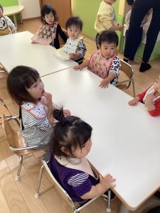 イラストを見て、「バナナ!!」と大好きなバナナだけに、子供たちの声が園内に響き渡りました。