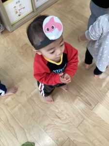 Baby shark doo doo doo doo doo doo… と両人差し指を合わせてbabyを表現したり、