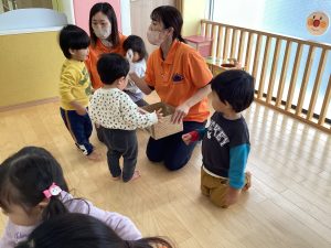 また、一人一人にカードを配って「Finger family 」の手遊びも行いました。