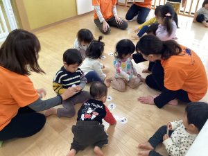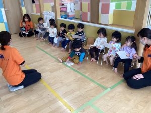みんなが集まる始まる前まで、絵本を読んだり、手遊びをして楽しんでいます。