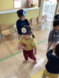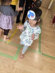 Run away doo doo doo doo doo doo… と、みんなで逃げ回り、音楽に合わせて楽しく体を動かしていました♬