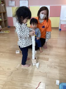 積み木をどこまで積めるか挑戦しているお友だちの姿も🗼