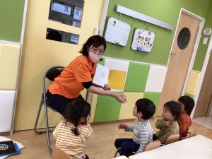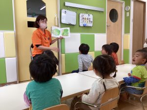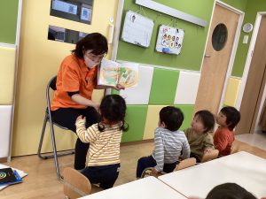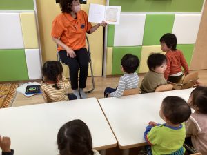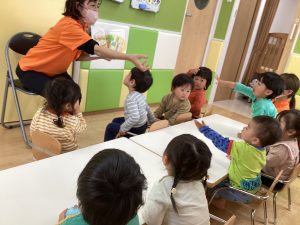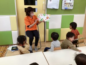 チーズもハムも…次は何をのせようかな?と想像しながら絵本を楽しんでいる子供たち🧒👦