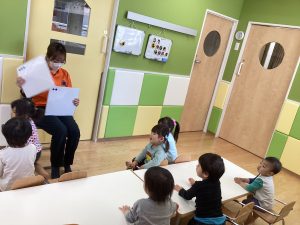 始めると集中して見てくれ、中には一緒に「いち にー さん よん…」と言ってくれるお友だちも出てきました!