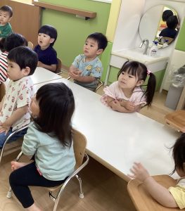 初めは先生が数字を言う様子をじっと見ていた子どもたち。