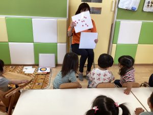ドッツカードも、フラッシュカードも始めはなかなか口に出して言うことが難しかった子どもたちもいつの間にか大きな声で言ってくれるようになり日々成長を感じています♪