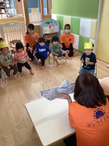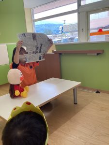 先生からは新聞紙シアターのプレゼントが🎁✨