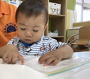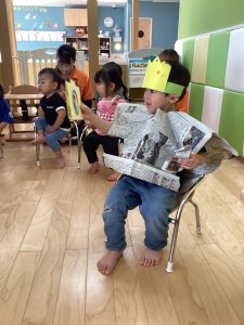 どんどん形が変わっていく新聞紙に興味津々の子どもたちでした!